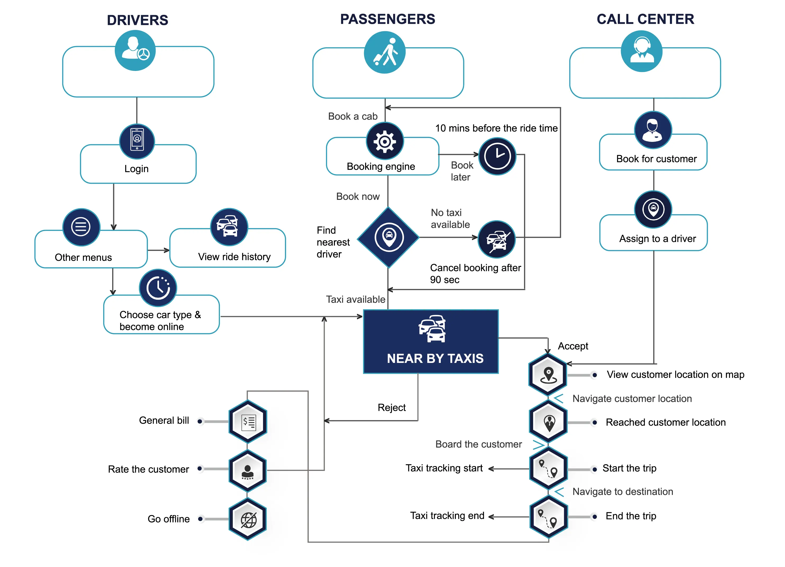 Our ATM Taxi Booking platform seamlessly connects drivers, passengers, and the call center to ensure a smooth and efficient ride experience.